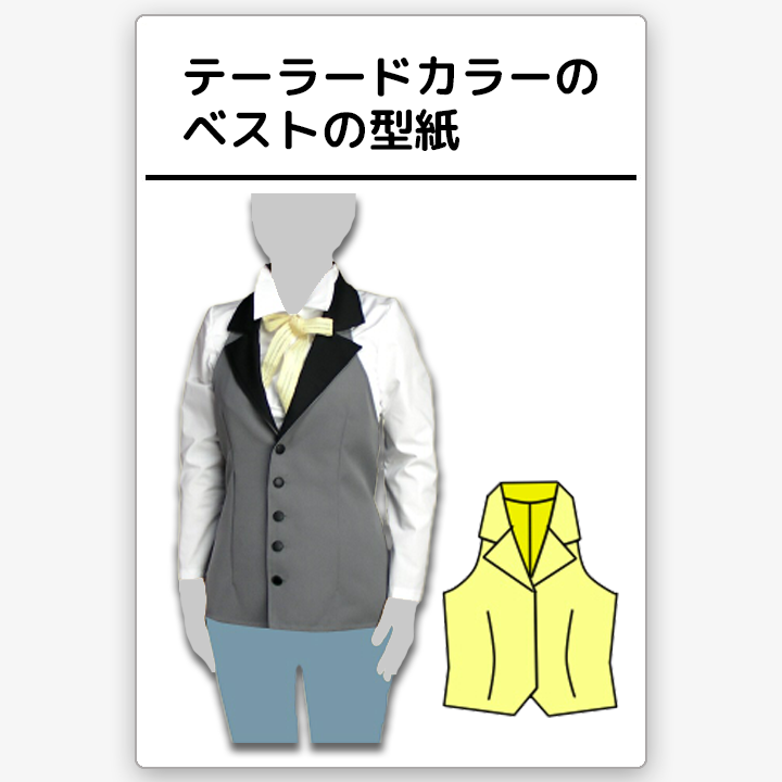 テーラードのえりの普通のベストと、背中が開いたベスト両方作れる型紙です。